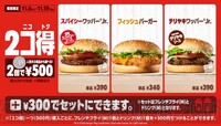 <画像1/1>『バーガーキング』2個で500円のお得なキャンペーン開催中!