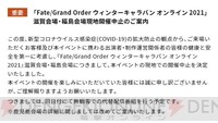 『FGO ウィンターキャラバン オンライン 2021』滋賀会場・福島会場の現地開催が中止に