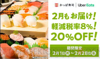 Uber Eatsでもテイクアウトでも! かっぱ寿司の対象商品が20%オフに