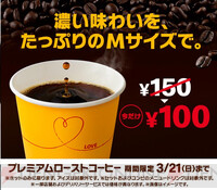 マクドナルドのプレミアムローストコーヒーMサイズが100円!