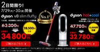 ダイソンv8 Slim fluffyが7/29・30の2日間限定で28,500円引きの34,800円!