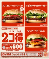 バーガー2個で500円! バーガーキングが“2コ得(ニコトク)”キャンペーン開催中