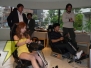 ソフトがセッティングされた場所に電撃の代表である『頭文字D』担当ライターが向かうと……な、なんとそこに用意されていたのは、シートまで完璧にセットされたハンドルコントローラ。「ゲゲゲ!!……すみません、コントローラでやると思っていたんでハンドルコントローラを練習してきていないんです。コントローラでやることできませんか?」と頼むと、セガの方々はきっぱりと「ダメです! ハンドルを握ってください!!」と言い放つ。どうやら完全にアウェイのようだ。「アクセルが…右でしたっけ? ブレーキが右でしたっけ? 免許は持っていますが全然運転してないですよ」と弱気な発言をするライター。見守る編集も不安いっぱいであった。