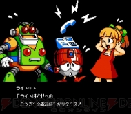 ・“ロックマン”(画像中央):“ライト博士”が戦闘用に開発した人間型ロボット。登場するボスを倒すと、特殊な武器を使うことができる。