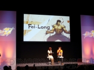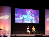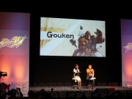 またこれまで公開されてきた、『ストIV』長編アニメーションの最新映像が上映された。STUDIO4℃が制作し、「アニマトリックス」内の「BEYOND」で監督を務めた森本晃司氏が監督を担当するこのアニメーションは、小野氏が「かなり長編になっていますが素晴らしい出来です。キャラクターを演じている声優さんもかなり豪華です!」と熱弁するほどの作品に仕上がっているとか。映像からは、“さくら”と“春麗”が共闘する様子や、何かを調査する“キャミィ”、殺意の波動に目覚めた“リュウ”などを確認できた。