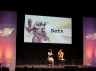 ステージに現れた本作のプロデューサー・小野義徳氏は、最初に家庭用に追加されるキャラクターを紹介。“さくら”、“豪鬼”、“剛拳”、“セス”の画像と動画を公開した後、使用条件についてすべては明かさなかったものの、「これまでのシリーズをプレイしている人なら、なんとなく「あの人をクリアすればいいのでは?」と予想つくと思います」とヒントを提示していた。