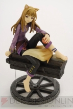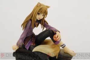 ホロは、電撃文庫の人気作品『狼と香辛料』のヒロイン。本商品では、ミステリアスでキュートな彼女を立体化している。馬車に揺られる情景をイメージしたディスプレイ台が、洒落た雰囲気を演出している。またファンにはおなじみの、“ちょいワル”な表情に差し替えも可能だ。