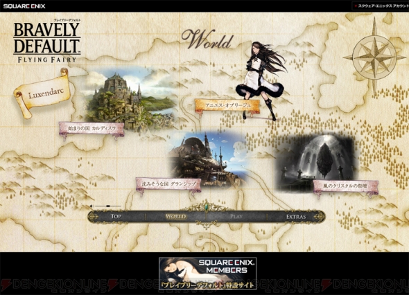| ▲公式サイトの“ワールド”では、世界地図や世界設定、キャラクター紹介の一部を閲覧できる。 |