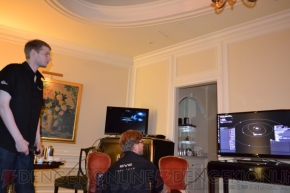 | ▲左側の写真のモニターに移っている極小の点が、約7,000個存在するソーラーシステム。さらにこのソーラーシステム1つ1つの中に、『DUST 514』の戦闘の舞台となる惑星が存在している。 | ||